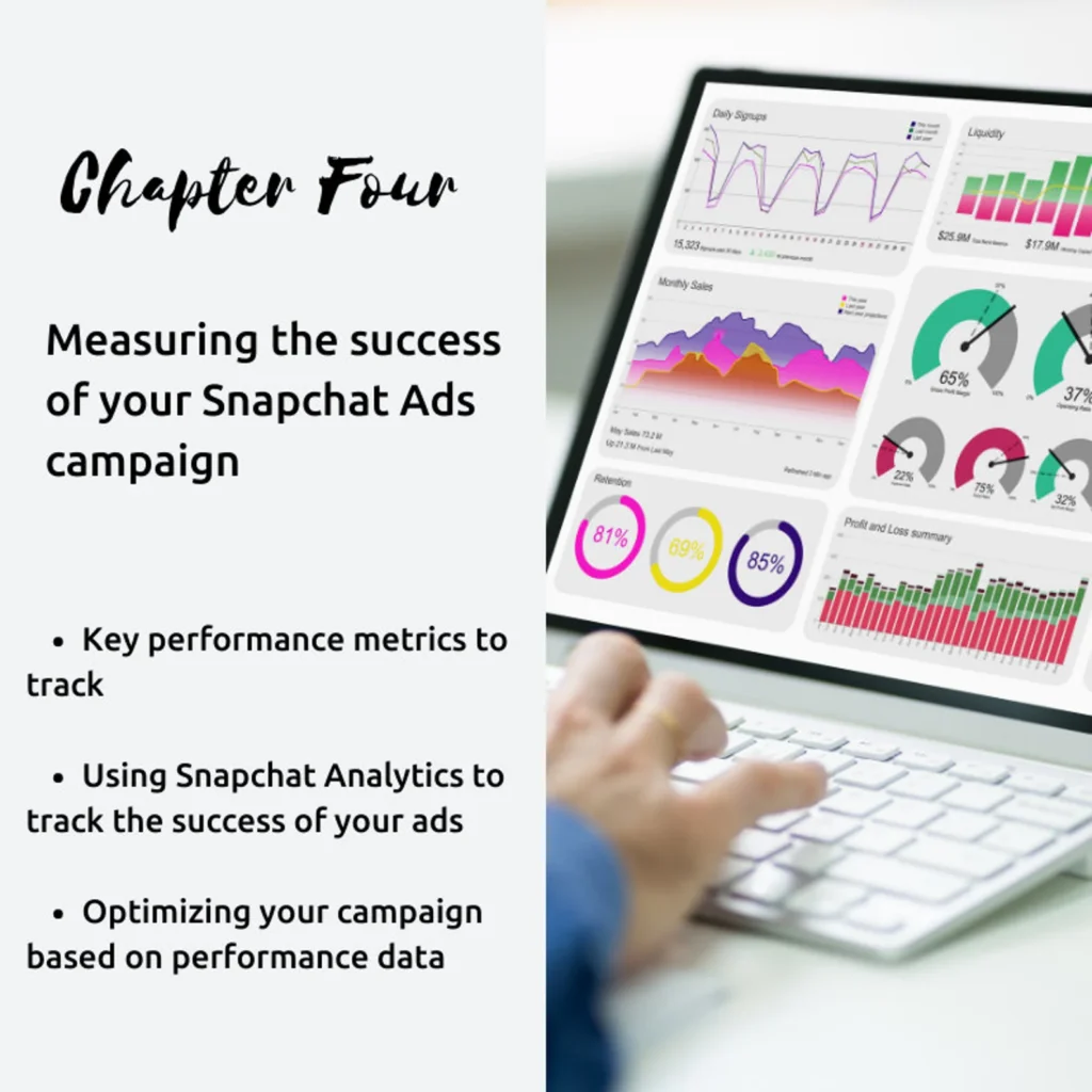 Demystify the numbers that matter! Chapter 4 is your guide to tracking key performance metrics such as impressions, clicks, and conversions. Dive deep into Snapchat Analytics and harness real-time performance data to optimize your campaigns like a pro.
