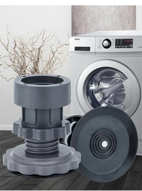 The washing machine feet protect floors and furniture from scratches, dents, and damage caused by vibrations.